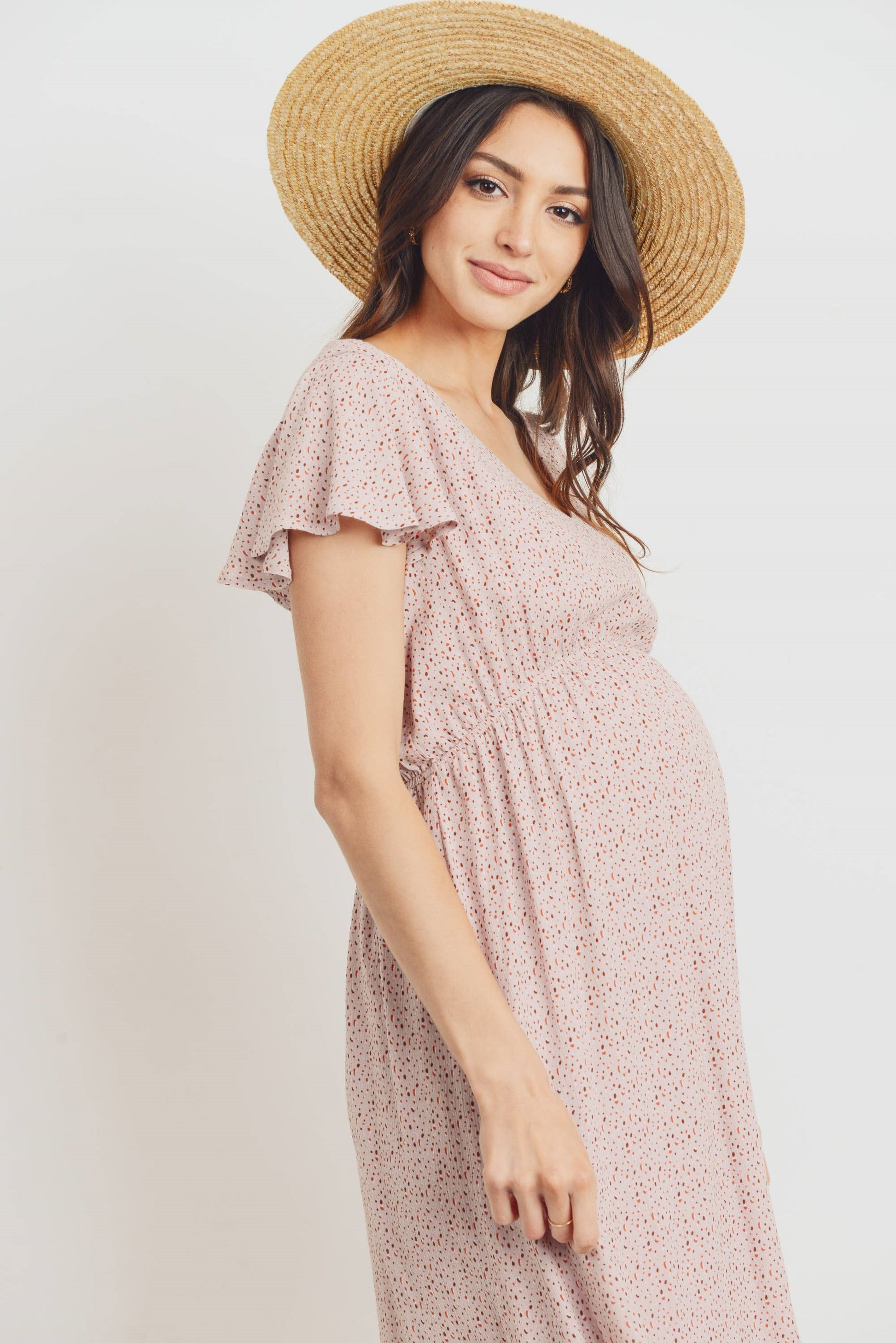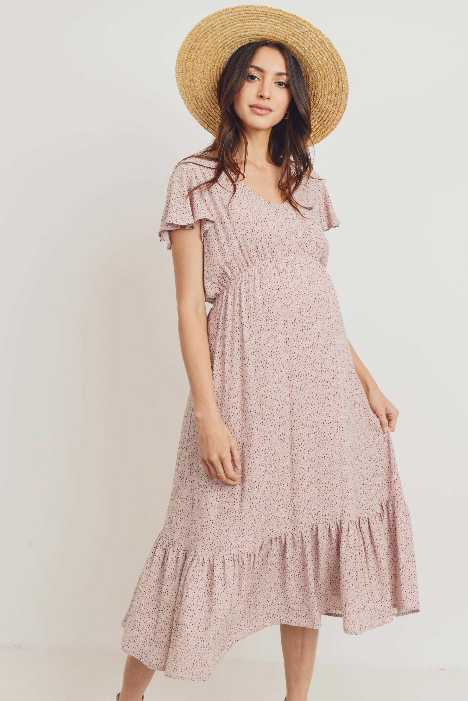 Rayon Gauze V-Neck Maternity Ruffle Dress